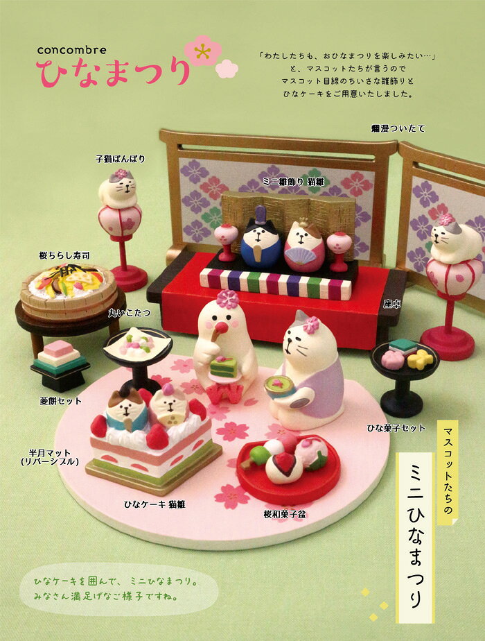 ギフト対応 商品名 concombre (コンコンブル) ひなケーキ 猫雛 ブランド名 DECOLE (デコレ) スタッフコメント 今年もコンコンブルのひなまつりシリーズが登場です! こちらはマスコット達のための、小さなミニひなまつりケーキ♪